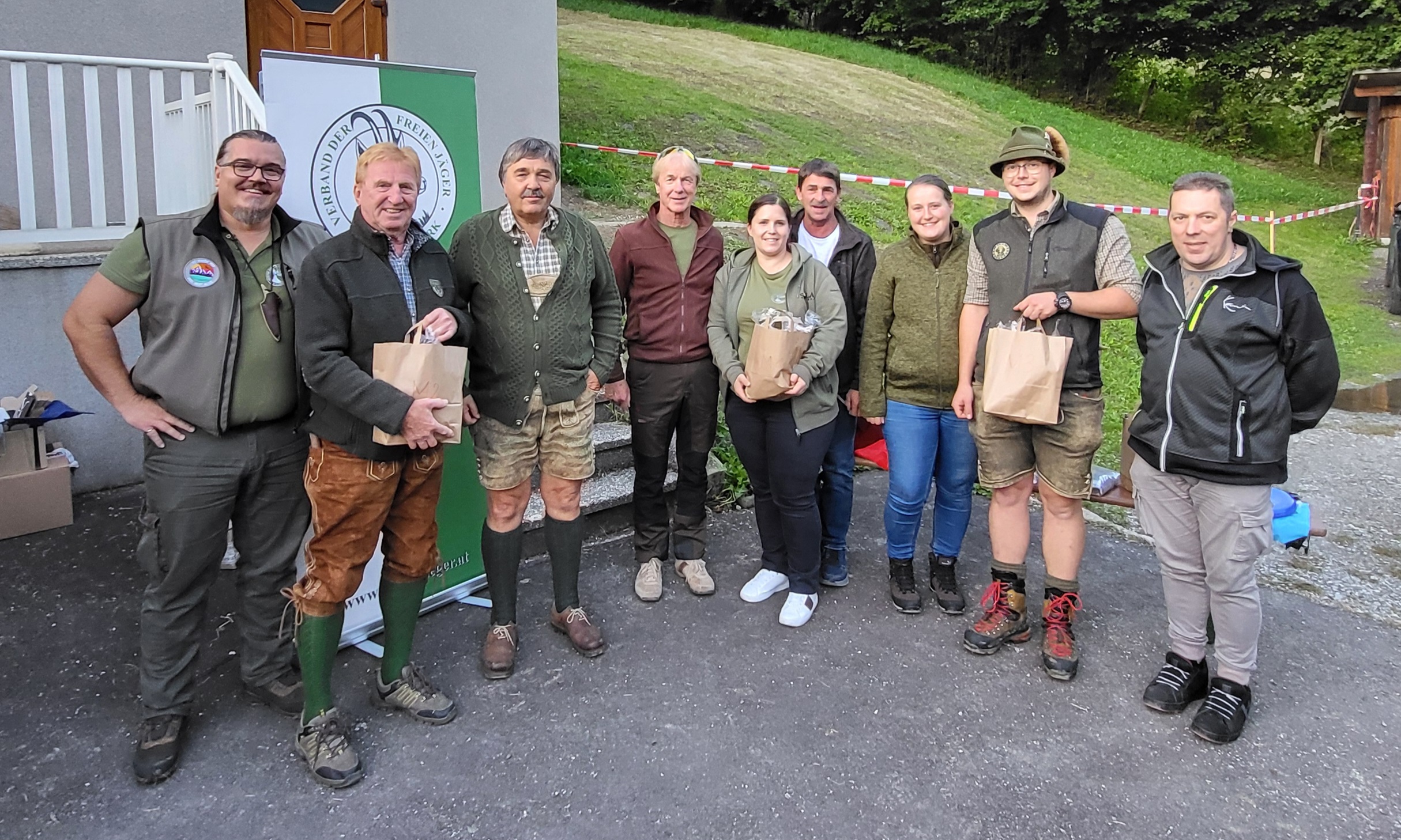 Bei wunderschönen Herbstwetter fand am Samstag, dem 21. September auf der auf der Liegenschaft der Familie Rohrer in Lassing-Burgfried das schon zur Tradition gewordenen Kleinkaliberschießen der Freien Jäger Bezirksgruppe Liezen statt. Auf der für diese Veranstaltung adaptierten ptivaten Schießanlage wurden unter den zahlreichen Teilnehmern die Siegerinnen und Sieger ermittelt, wobei jede Serie bestehend aus drei Schuss - jeweils ein Schuss sitzend aufgelegt, ein Schuss über den festen Bergstock und ein Schuss über den freien Bergstock – geschossen werden musste. Den Einzelbeweb entschied Bruno Lödl vor Josef Fuchs und Gerda Fuchs klar für sich. Den Mannschaftsbewerb sicherte sich das Team „Paltental“ (Helma Haberl, Max Poier, Dominik Seebacher) vor dem „Team Platzer“ und dem Team „D‘ Frischgfangten“. Im Anschluss an die Siegerehrung, bei welcher wertvolle Geld- und Sachpreise zu Verteilung kamen erfolgte noch eine Verlosung von Warenpreisen unter den anwesenden Teilnehmern, ehe die Veranstaltung in gemütlicher Runde ihren Ausklang fand. Einen nochmaligen herzlichen Dank allen Mitarbeiterinnen und Mitarbeitern und vor allem der Gastgeberfamilie Rohrer!
