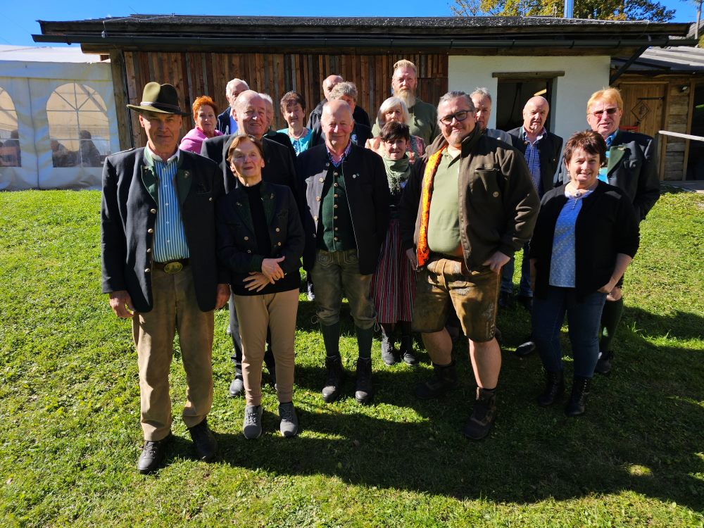 Bei wunderschönem Herbstwetter wurden die Mitglieder der Bezirksgruppe Liezen, welche in diesem Jahr einen runden Geburtstag feierten, am Sonntag dem 6. Oktober vom Vorstand in die Perschenhube des Theresianums in Lassing eingeladen. Die Gäste waren zahlreich erschienen und wurden vom Bezirksobmann DI (FH) Bernhard Frosch herzlichst begrüßt. In seiner Ansprache wies der Bezirksobmann auf die wertvolle Bedeutung einer starken Mitgliedschaft hin und hob insbesondere die langjährige Vereinszugehörigkeit von den zu ehrenden „runden 60ern, 70ern und 80ern“ hervor. Anschließend wartete der Wirt der Perschenhube und zugleich 2. Obmann-Stellvertreter der Bezirksgruppe Liezen, Matthias Mündler, seine selbst zubereiteten Schmankerln aus der Küche auf. Danach erfolgte die Überreichung eines Geschenkes in Form des Jagdbuches „Eingestochen“ durch den Bezirksobmann Bernhard Frosch an die Jubilare und daraufhin ging es zum gemütlichen Teil des Festtages über. Im Zuge dieses Jubiläumstages fand auch das Umschneiden des Maibaumes statt und er fand bei angenehmer Musikbegleitung seinen gemütlichen Ausklang.