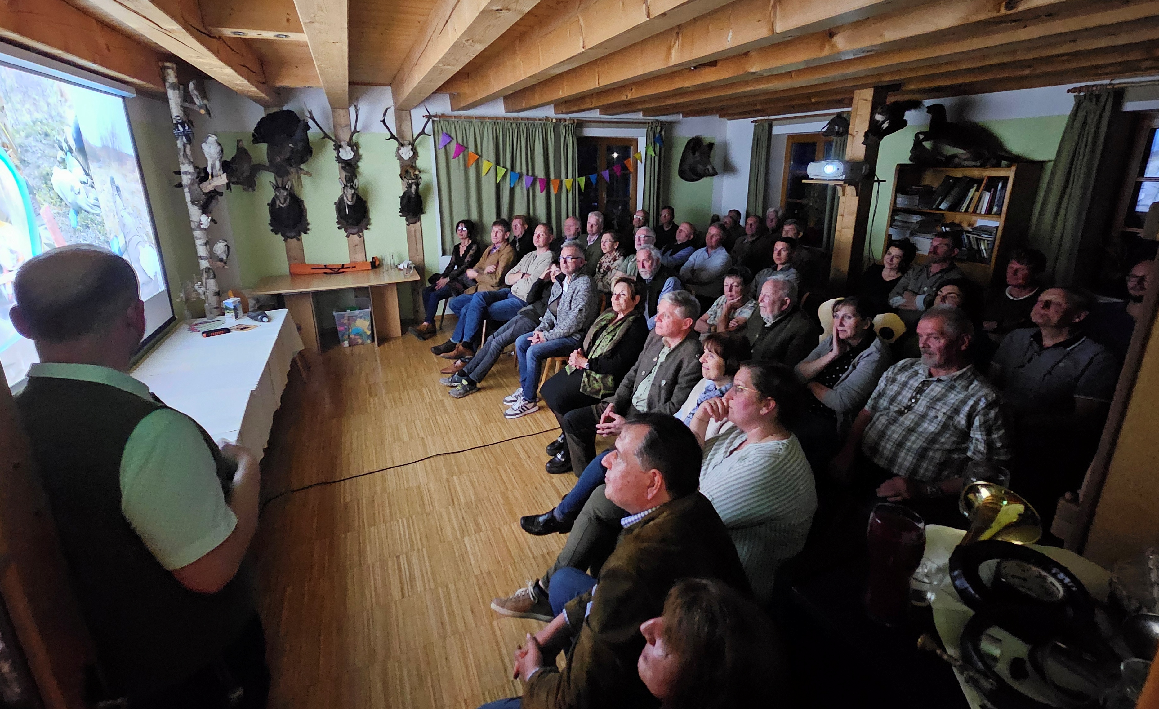 Am Freitag den 5. April 2024 waren wir zu Gast bei einem Kanada Abend von Michael Fröhlich in der Nichtlstubn in Lassing. Der Kursraum war mit ca. 40 Teilnehmern randvoll besetzt und wir durften uns über eine gekonnte, kurzweilige Präsentation, sowie atemberaubende Landschaftsbilder und Eindrücke freuen! Michael berichtete in seinem gut eineinhalbstündigen Vortrag über seine Jagdreise nach British Columbia im Jahr 2023, welche letztendlich von Erfolg gekrönt war. Ein Herzliches Dankeschön gilt dem Hausherren Wolfgang Mündler für die Organisation dieses Jagastammtischs und unser kräftiges Weidmannsheil ergeht an Michael zu seiner prächtigen Elchtrophäe!