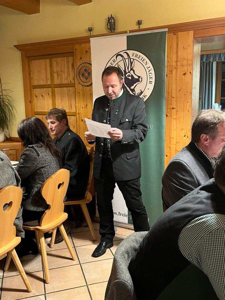Am 1. Dezember wurde im Gasthaus Mündler in Lassing der statutengemäß im Dreijahresabstand vorgesehene Bezirkstag der Freien Jäger Liezen abgehalten. Anlässlich der Begrüßung konnte der interimistisch mit der Leitung der Bezirksgruppe beauftragte RegRat Josef Platzer neben den zahlreich erschienenen Mitgliedern als Ehrengäste den stellvertretenden Bezirksjägermeister Andreas Zeiler in Vertretung des Landesobmannes des Verbandes der Freien Jäger Steiermark Michael Goldgruber seine beiden Stellvertreter Markus Steiner und Ing. Manfred Rohr sowie das Ehrenmitglied Johann Dobesberger herzlich willkommen heißen. Im Anschluss berichtete der interimistische Bezirksobmann RegRat Josef Platzer über den im letzten Halbjahr getätigten Reorganisationsprozess und den zahlreichen Aktivitäten der Bezirksgruppe. Mag. Gerhard Fellner trug in seiner Funktion als Kassier den Kassabericht vor, wonach dem Kassier und dem Vereinsvorstand von der Vollversammlung die Entlastung erteilt wurde. Nach dem offiziellen Berichtsteil des Bezirkstages wurden verdiente Mitglieder mit Ehrengeschenken bedacht, wobei der scheidende Bezirksobmann Josef Fuchs, welcher der Bezirksgruppe über 23 Jahre vorstand, nach einstimmigen Vorstandsbeschluss mittels Urkunde zum Bezirks-Ehrenobmann ernannt wurde. Nach dem erfolgten Rücktritt des Vorstandes übergab RegRat Josef Platzer den Vorsitz Landesobmann-Stellvertreter Markus Steiner, der die Wahl des neuen Vorstandes abhandelte. Im Zuge dessen wurde einstimmig folgender Vereinsvorstand gewählt: Bezirksobmann DI (FH) Bernhard Frosch, 1. Obmann-Stellvertreter Franz Rohrer, 2. Matthias Mündler, Schriftführer Martin Gaisberger, Schriftführer-Stellvertreter Jan Schupfer, Kassier Mag. Gerhard Fellner, Kassier-Stellvertreterin Carmen Brebric und Rechtsberater RA Mag. Gregor Glawischnig. Als Beiräte wurden Max Poier (auch Schießreferent), Helma Haberl, Josef Fuchs und RegRat Josef Platzer bestimmt. In seinen Grußworten zollte der stellvertretende Landesobmann Markus Steiner der neu aufgestellten Bezirksgruppe höchste Anerkennung und überbrachte die besten Wünsche für die künftige Vereinsarbeit. Der stellvertretende Bezirksjägermeister von Liezen Andreas Zeiler hob die besonders umsichtige und engagierte Zusammenarbeit der Freien Jäger im Bezirksjagdausschuss hervor und wünschte dem neuen Vorstand weiterhin ein erfolgreiches Wirken.