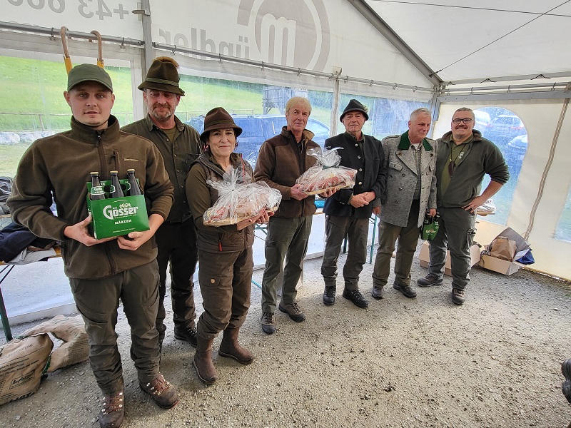 Am Samstag, dem 30. September fand auf der auf der Liegenschaft der Familie Rohrer in Lassing das schon zur Tradition gewordenen KK-Schießen der Bezirksgruppe Liezen statt. Auf der für diese Veranstaltung adaptierten Schießanlage wurden die Siegerinnen und Sieger ermittelt, wobei jede Serie bestehend aus drei Schuss - jeweils ein Schuss sitzend aufgelegt, ein Schuss über den festen Bergstock und ein Schuss über den freien Bergstock – geschossen werden musste. Den Einzelbeweb entschied Helma Haberl vor Markus Hamp und Thomas Thaler klar für sich. Den Mannschaftsbewerb gewann das Team „Paltental“ (Helma Haberl, Max Poier, Dominik Seebacher) vor dem Team „Platzer“ (Raimund Karl Platzer, Josef Platzer, Günter Rainer) und dem Team „Jagdkurs Mündler“ (Bernhard Frosch, Martin Gaisberger, Jan Schupfer). Im Anschluss an die Siegerehrung, bei welcher wertvolle Geld- und Sachpreise zu Verteilung kamen erfolgte noch eine Verlosung von Warenpreisen unter den anwesenden Teilnehmern, ehe die Veranstaltung in gemütlicher Runde ihren Ausklang fand. Auf diesem Wege nochmals einen herzlichen Dank an den Bezirksobmann-Stellvertreter Franz Rohrer und seiner Gattin Marianne für die dargebotene Gastfreundschaft!